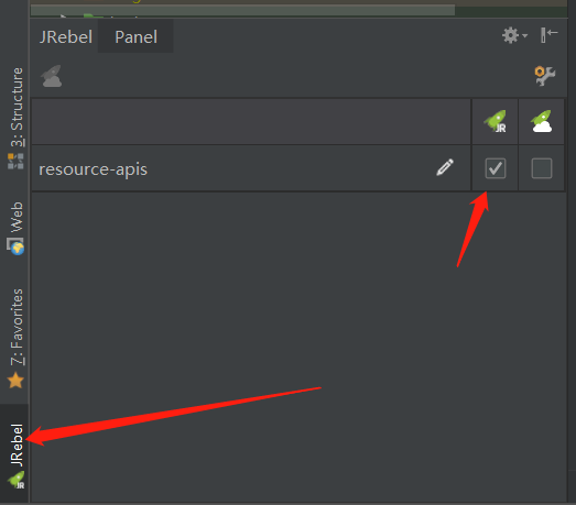 JRebel安装完成后,idea左侧出现JRebel的工具窗口,如下图所示: