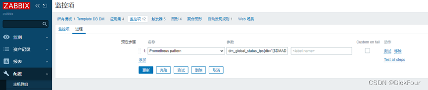 接着,在监控项的进程中,配置Prometheus pattern,在参数中输入对应的标签就可以得到相应监控项的结果。