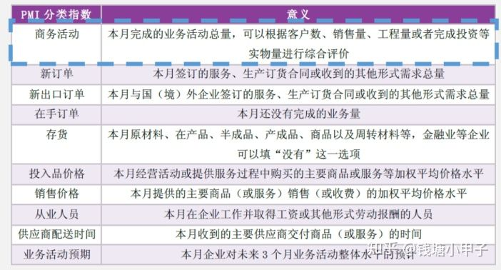 非制造业PMI也是一样 蓝色框框中的一项就构成了非制造业pmi