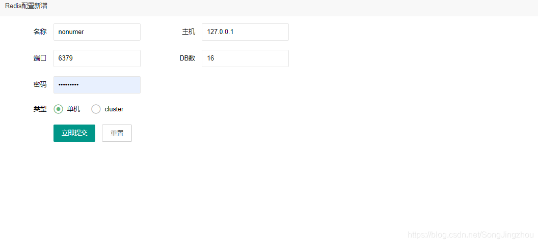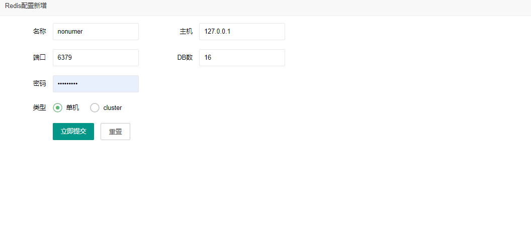 最后在redis管理那里添加redis服务信息,注意 名称不要添加数字,因为这可能导致你最终的key值无法正确显示