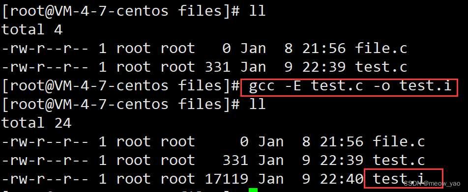 2.输入命令,进行文件的预处理,生成后缀为 .i 的文件test.i