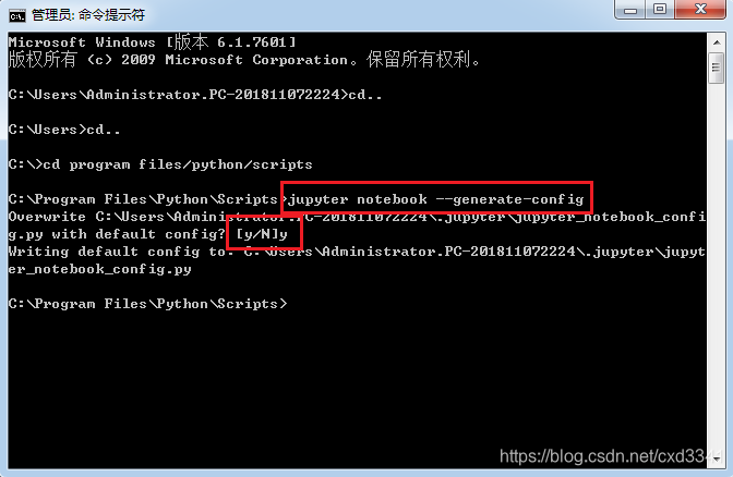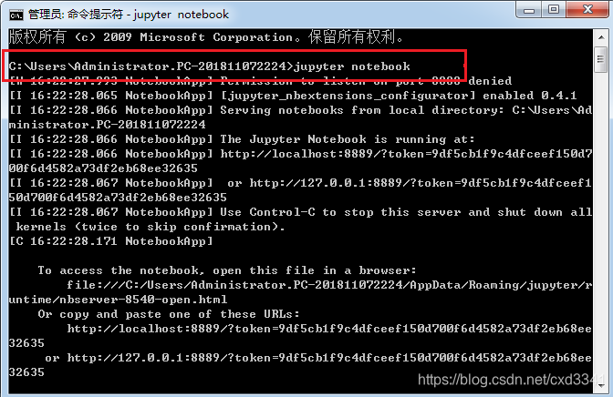 在命令行中输入jupyter notebook(等待一下,会自动打开一个界面)