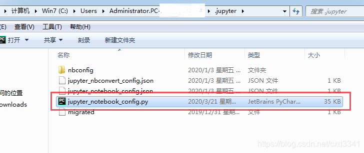 2、打开“.jupyter”文件夹,可以看到里面有个配置文件。