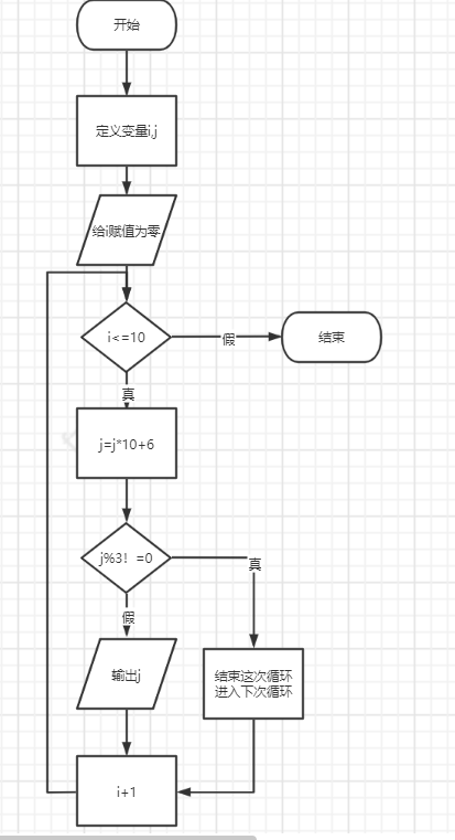 - 判断i是否小于等于10,若大于等于10则转第⑦步,否则转第④步;