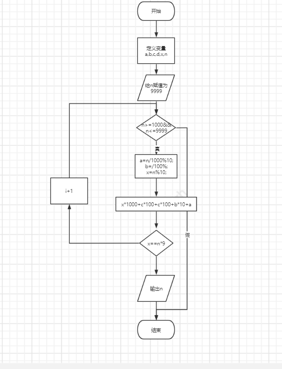 - n-1,判断n是否大于等于1000或小于等于9999,是则转第④步,否则转第⑥步;
