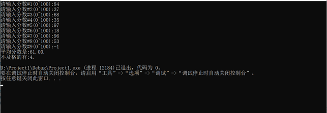 2.从键盘上输入一批学生的成绩(以负数作为结束标志),计算平均分,并统计不及格成绩的个数