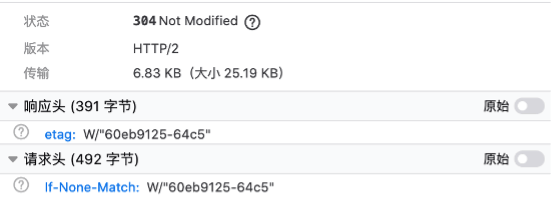 值相等,服务器就直接返回304
