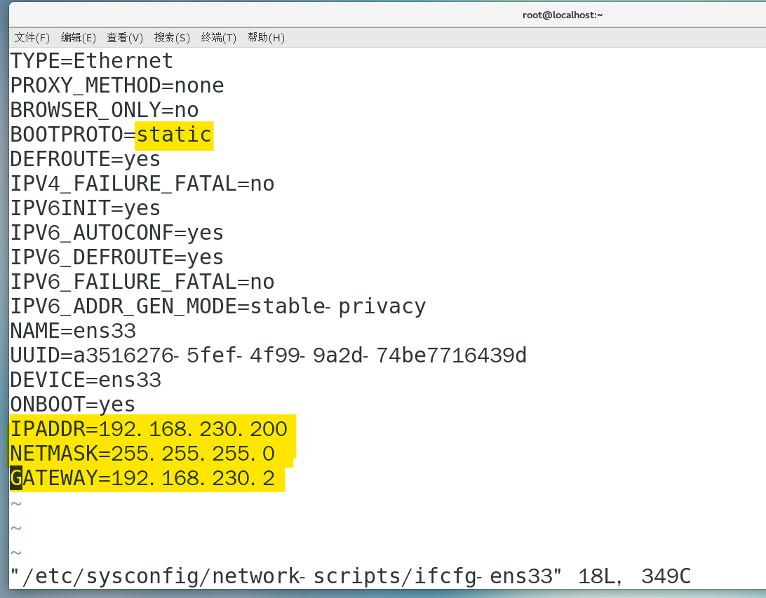 vim /etc/sysconfig/network-scripts/ifcfg-ens33