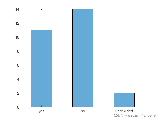 histogram(C)(其中 C 为分类数组)通过为 C 中的每个类别绘制一个条形来绘制直方图。
