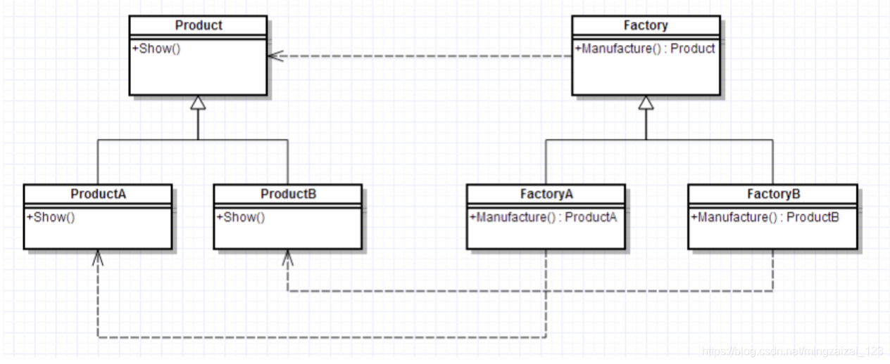 4、每个具体工厂类只负责创建对应的产品,而简单工厂中的工厂类存在复杂的switch逻辑判断