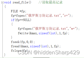 读取当前分数和历史最高分数采用文件文本读写的读写函数来完成 。代码如下图所示