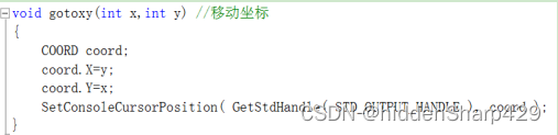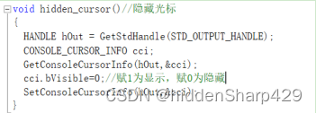 在运行程序的时候会有闪烁的下划线,这个隐藏光标可以将下划线隐藏。代码如下图所示