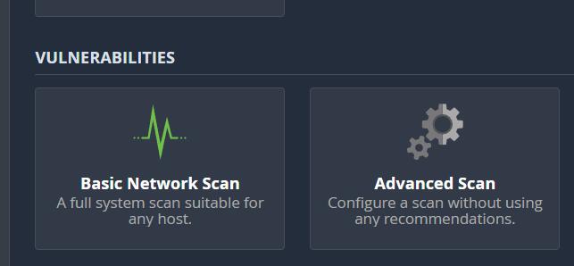 我们可以建立一个新的扫描,左边是基础扫描,右边是高级扫描,二者的区别是高级扫描可以自己定义插件.同时高级扫描的选项也更多,比方可以选择扫描 Web 应用,也可以扫描恶意应用.