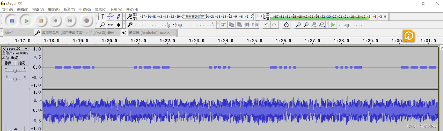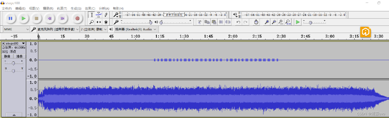 又看到文件名是stego100,以为是要用MP3stego解决,但需要密码,而且最大问题是stego只能进行MP3类型的音频隐写和解密