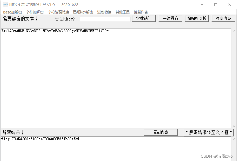 输入密码打开rar进入flag.txt,看见一串base64编码,拿到工具解码,得到flag