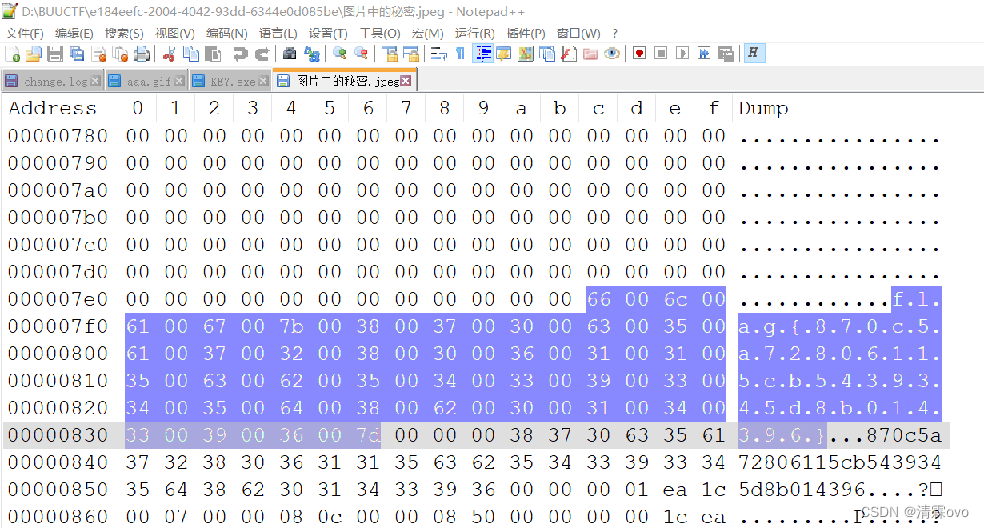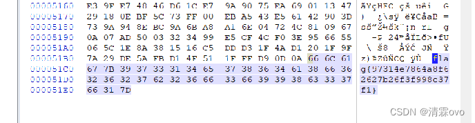 根据PK头部判断是zip类型,save bin ,文件名改为flag.zip,打开zip后是一个类型未知的文件1,直接记事本打开,可以找到flag