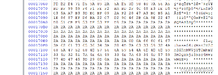 jpg用winhex打开头尾什么都没发现,不死心,又搜索了一下flag,得到了一串base 64编码的密码,解开后得到flag