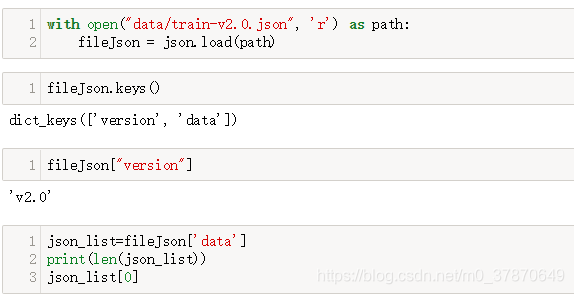 def read_corpus():"""读取给定的语料库,并把问题列表和答案列表分别写入到 qlist, alist 里面。 在此过程中,不用对字符换做任何的处理qlist = ["问题1", “问题2”, “问题3” ....]alist = ["答案1", "答案2", "答案3" ....]务必要让每一个问题和答案对应起来(下标位置一致)"""qlist = []alist = []with open("data/train-v2.0.json", 'r') as path:fileJson = json.load(path)json_list=fileJson['data']for data_dict in json_list:for data_key in data_dict:if data_key=="paragraphs":paragraphs_list=data_dict[data_key]for content_dict in paragraphs_list:for qas_key in content_dict:if "qas" == qas_key:qas_list = content_dict[qas_key]for q_a_dict in qas_list:if len(q_a_dict["answers"]) > 0:qlist.append(q_a_dict["question"])alist.append(q_a_dict["answers"][0]["text"])print("qlist len:" + str(len(qlist)))print("alist len:" + str(len(alist)))assert len(qlist) == len(alist) # 确保长度一样return qlist, alist