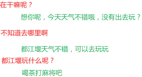 任务型问题,1):“成都今天天气怎么样”;2):“明天呢";3):“后天呢”。