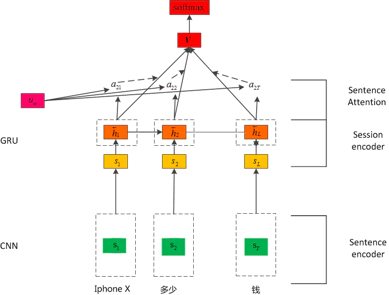 针对此处的多轮对话,涉及到商品的购买、售前运费和退换货政策三个意图,并且后面的意图分析需要前文的会话意图,就是一个典型的多轮对话过程。首先,“iphone X多少钱”可以通过单句的意图分类即可完成应答;而“运费是多少呢”则需要判断用户咨询的属于售前运费还是售后运费,此时可通过结合上文问题的方式进行意图分析(1:抽取上文的意图特征加入当前问题可解决部分上下文场景问题;2:结合上文和当前问题采用深度学习的算法进行上下文的意图分析)。最后,“可以无理由退货么”需要知道商品的信息才可以回答用户的问题,因此需要上文商品“iphone X”(可以将对话中实体、商品信息保存用于下文应答)。