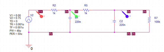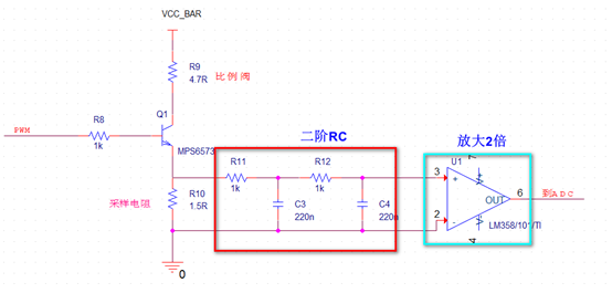 我们这里使用二阶RC低通滤波来达到检流电阻的PWM波等效DC直流电平的功能;