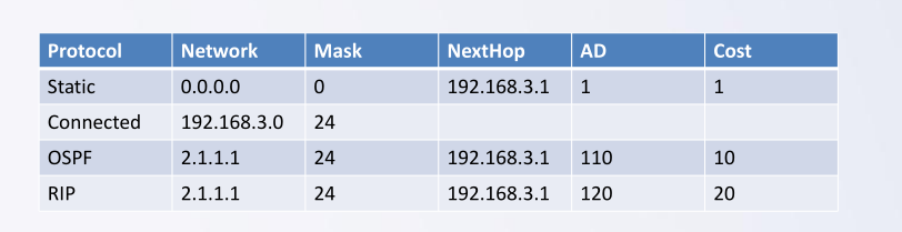 路由表中的路由条目获取来源有多种:直连路由、静态路由及动态路由协议