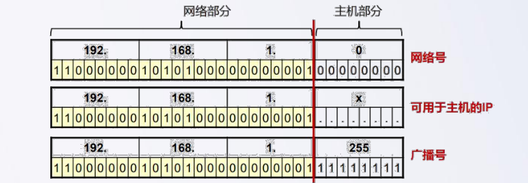 网络地址:指代网络的地址。在网络的 IPv4 地址范围内,最小地址保留为网络地址。 此地址的主机部分的每个主机位均为0。