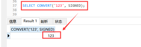 SELECT CONVERT('123', SIGNED);