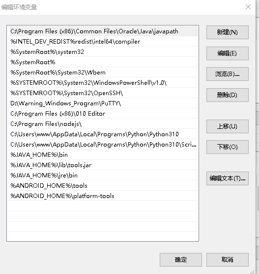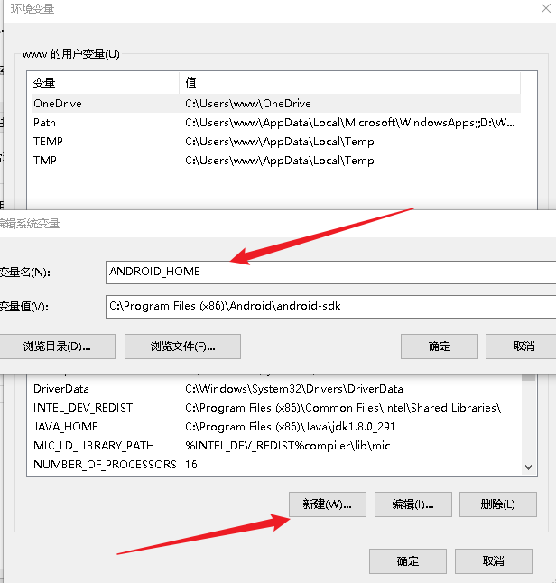 添加成功之后,找到Path这个变量,并点击编辑,随后新建以下3个变量: