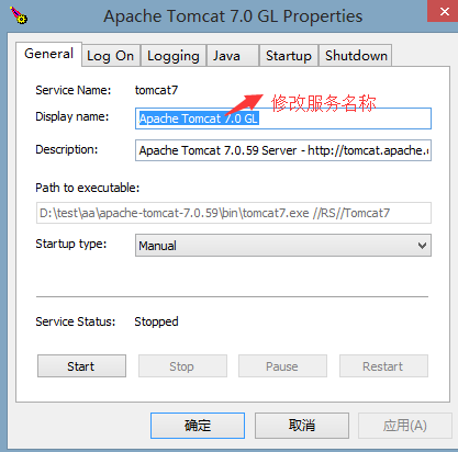 (1)通过service.bat install 注册服务,打开tomcat7w.exe来配置