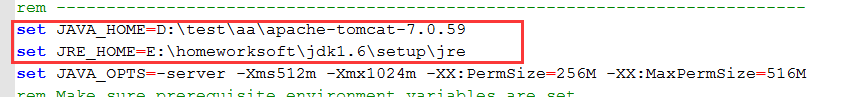 set JAVA_HOME=D:\test\aa\apache-tomcat-7.0.59 //指定的是tomcat的路径
