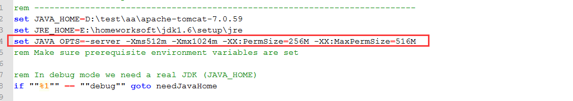 set JAVA_OPTS=-server -Xms512m -Xmx1024m -XX:PermSize=256M -XX:MaxPermSize=512M
