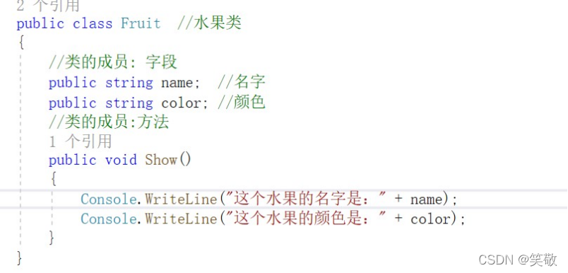 例如,以水果为例来声明一个类,代码如下:在 C# 语言中创建的任何项目都有类的存在,通过类能很好地体现面向对象语言中封装、继承、多态的特性。