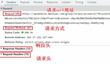 Headers 头部信息:请求url地址、请求方式、响应头、请求头