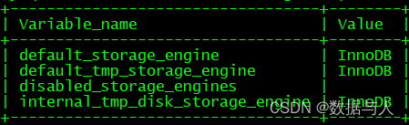 show variables like ‘%engine%’ 查看默认的数据库引擎