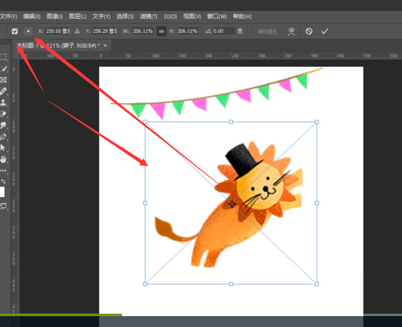 19版本以上默认 拖动边角等比放大缩小,19版本以下要同时按shift拖动才可以等比放大