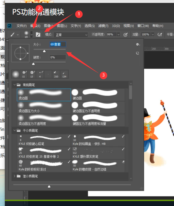 快捷键:alt+鼠标右键+鼠标指针上下滑动(边缘模糊/清楚)、左右滑动(画笔大小调节)