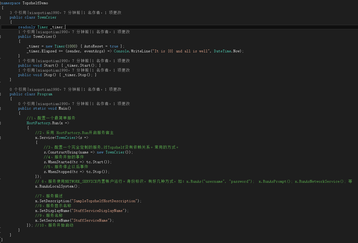官网给出的教程很详细http://docs.topshelf-project.com/en/latest/installation/index.html