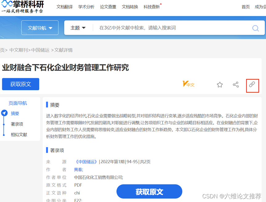 值得注意的是,掌桥科研“直接获取原文”的功能确实是它对比起其他网站更有优势的一点。