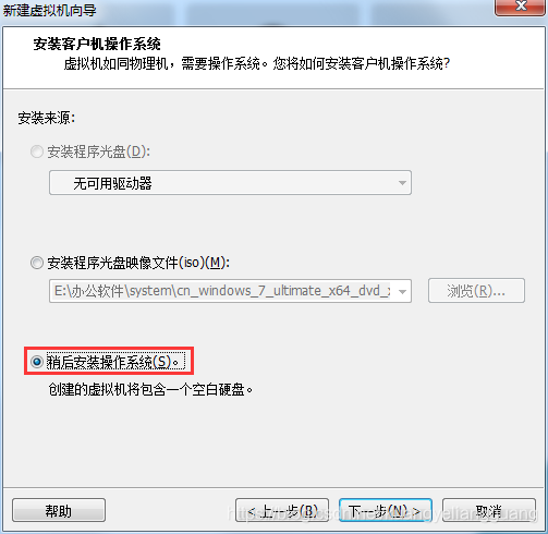 注:创建虚拟机的过程就相当于我们组装了一台电脑,给主板装上cpu、硬盘、内存条,电源等,但是还不能运行,因为虚拟机目前还只是一台空机器,因为还没有安装操作系统