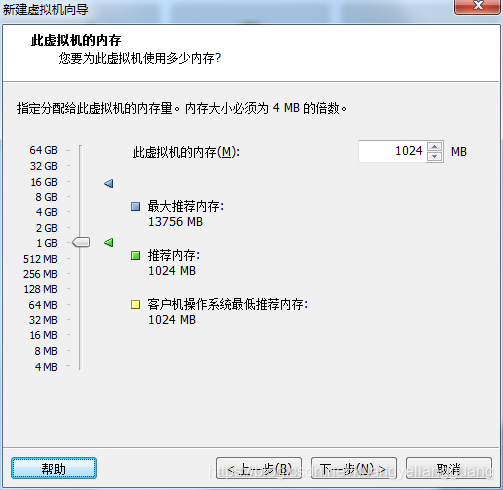根据自己物理机的硬件配置选择为虚拟机分配的内存大小,字符界面最小内存为512MB