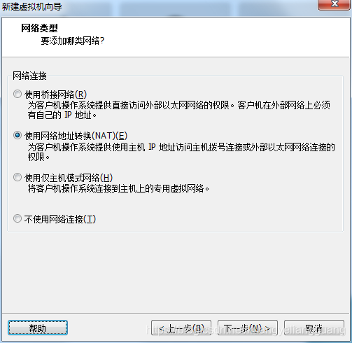 在NAT模式下,虚拟系统需要借助NAT(网络地址转换)功能,通过宿主机器所在的网络来访问公网。也就是说,使用NAT模式虚拟系统可把物理主机作为路由器访问互联网。NAT模式下的虚拟系统的TCP/IP配置信息是由VMnet8(NAT)虚拟网络的DHCP服务器提供的,无法进行手工修改,因此虚拟系统也就无法和本局域网中的其他真实主机进行通讯。采用NAT模式最大的优势是虚拟系统接入互联网非常简单,你不需要进行任何其他的配置,只需要宿主机器能访问互联网即可。