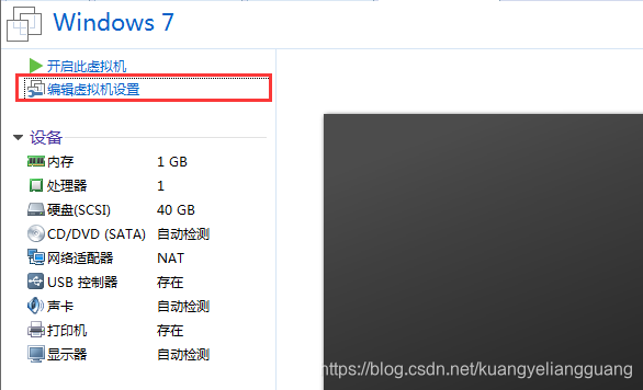 可以在设备中看到虚拟机的各项配置,选择编辑虚拟机