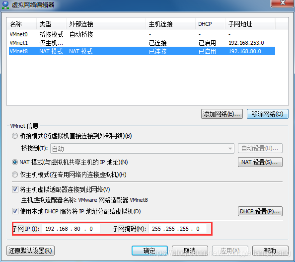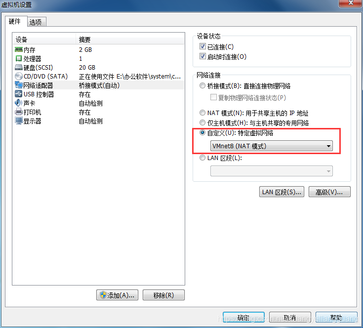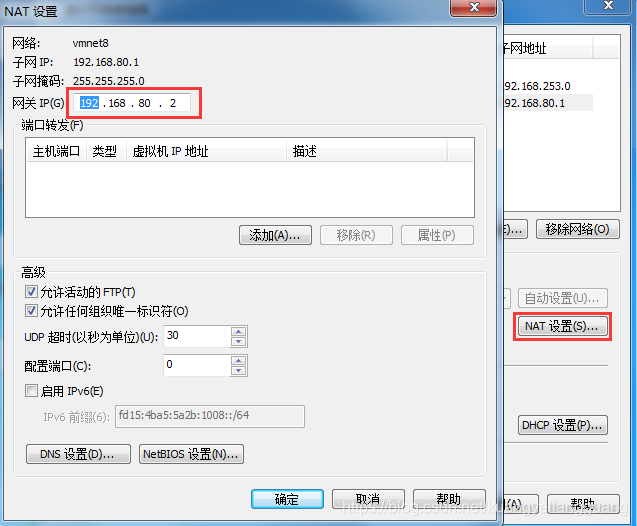 2、设置虚拟机为NAT上网(首先确保物理机中VMNAT Service服务开启)