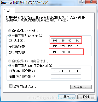 将虚拟机的地址设置成和物理机地址在同一个网段