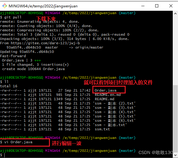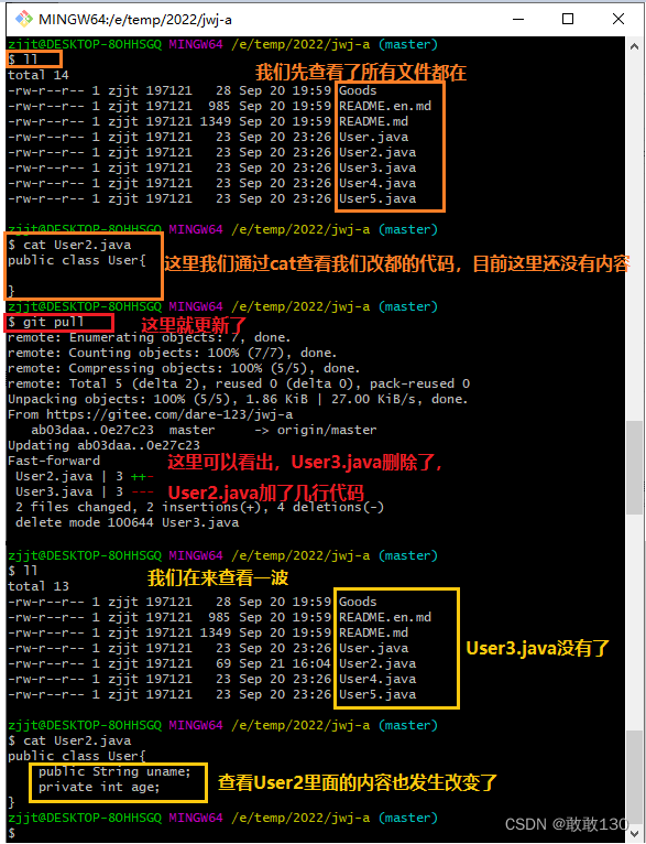 8. 实践操作:使用git从远程仓库pull(拉)至本地仓库(重点) git pull