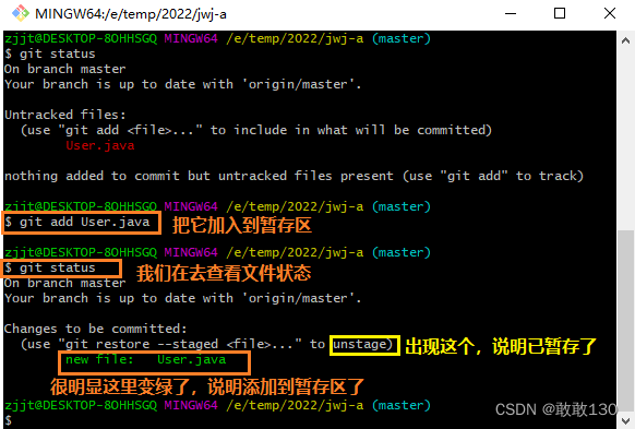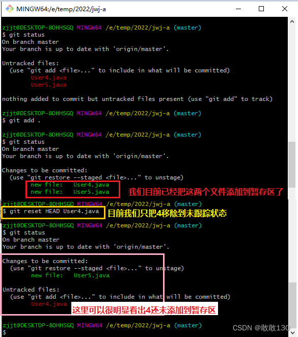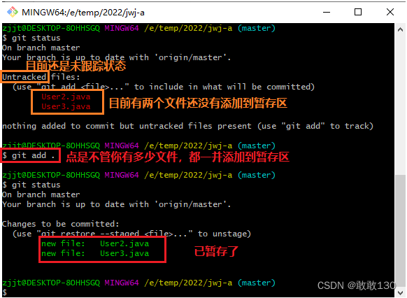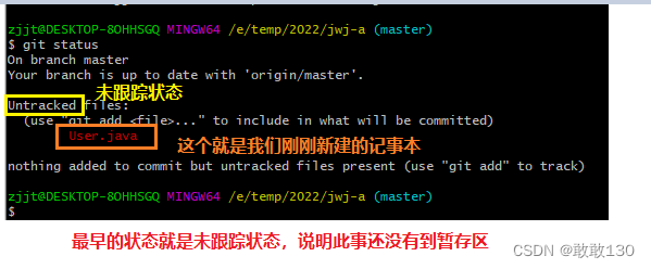 5.git status 展示工作区及暂存区域中不同状态的文件
