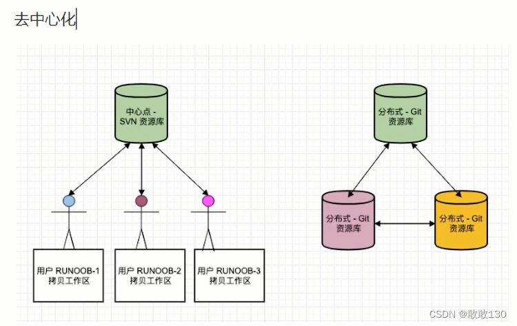 GIT是分布式的,SVN不是:这是GIT和其它非分布式的版本控制系统,例如SVN,CVS等,最核心的区别。