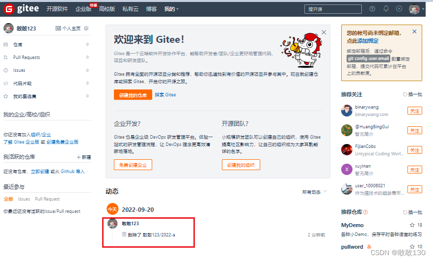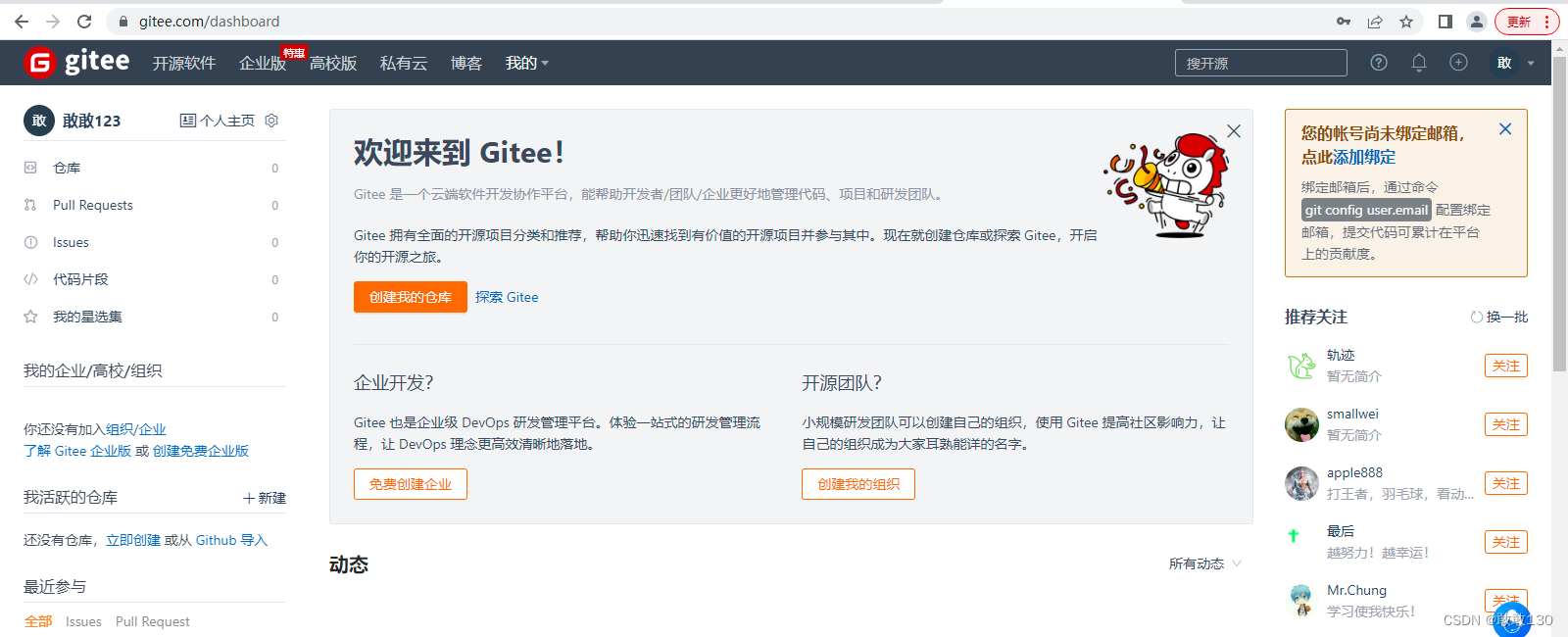 官网地址栏:Gitee - 基于 Git 的代码托管和研发协作平台