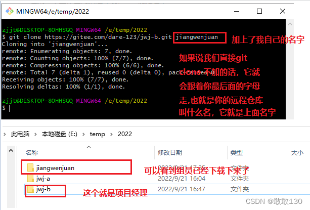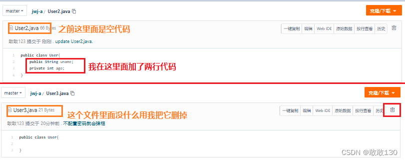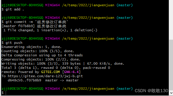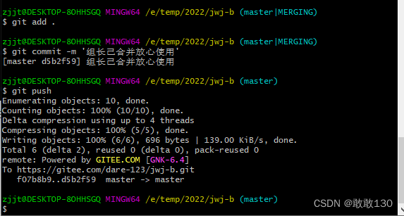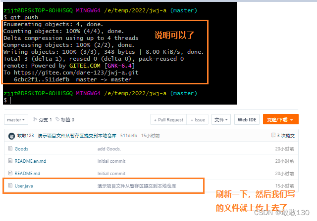 我们在去gitee上刷新一下:组长和组员修改的代码都保留了
